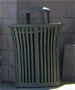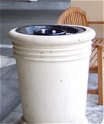 素焼き風プラスチック製の 灰皿付きごみ箱 | プラスチック製の 灰皿付きごみ箱 | コンクリート製の灰皿 角型、円柱型がある | 日本では見ない形の灰皿 上部の穴から吸殻を入れる |